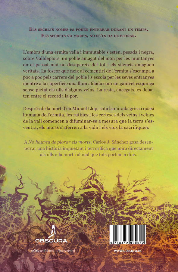 Amb No haureu de plorar els morts Carlos J. Sánchez s'atreveix a desenterrar una història inquietant i terrorífica que mira directament als ulls a la mort i al mal que tots portem a dins.